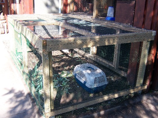 Tür einbauen. Da das Gehege nur 1,20m hoch ist würde sich